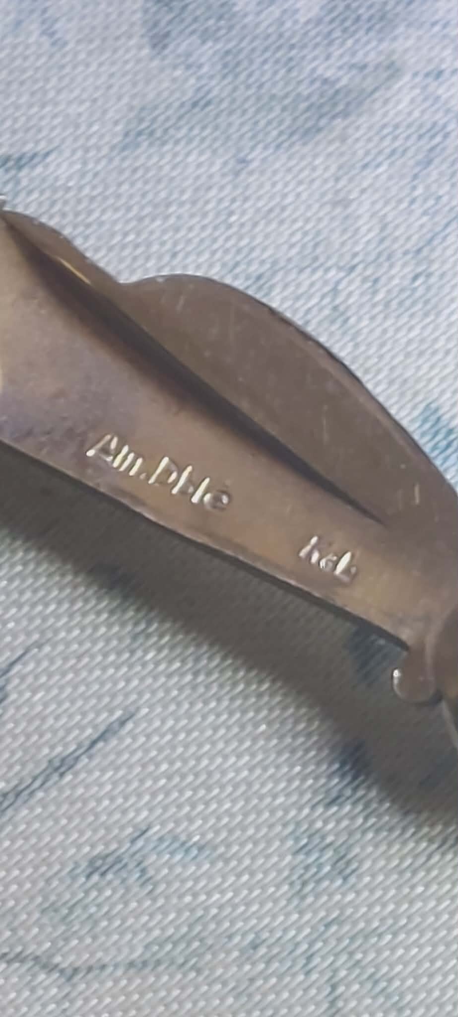 AM Doublee (of Amerik Doublé): Dit geeft aan dat het sieraad is gemaakt van "Amerikanerdoublé". Dit is een hoogwaardige vorm van vergulden waarbij een stevige laag goud mechanisch op een basismetaal (meestal messing) is aangebracht. Het is duurzamer dan standaard bladgoud of een dunne goudlaag.